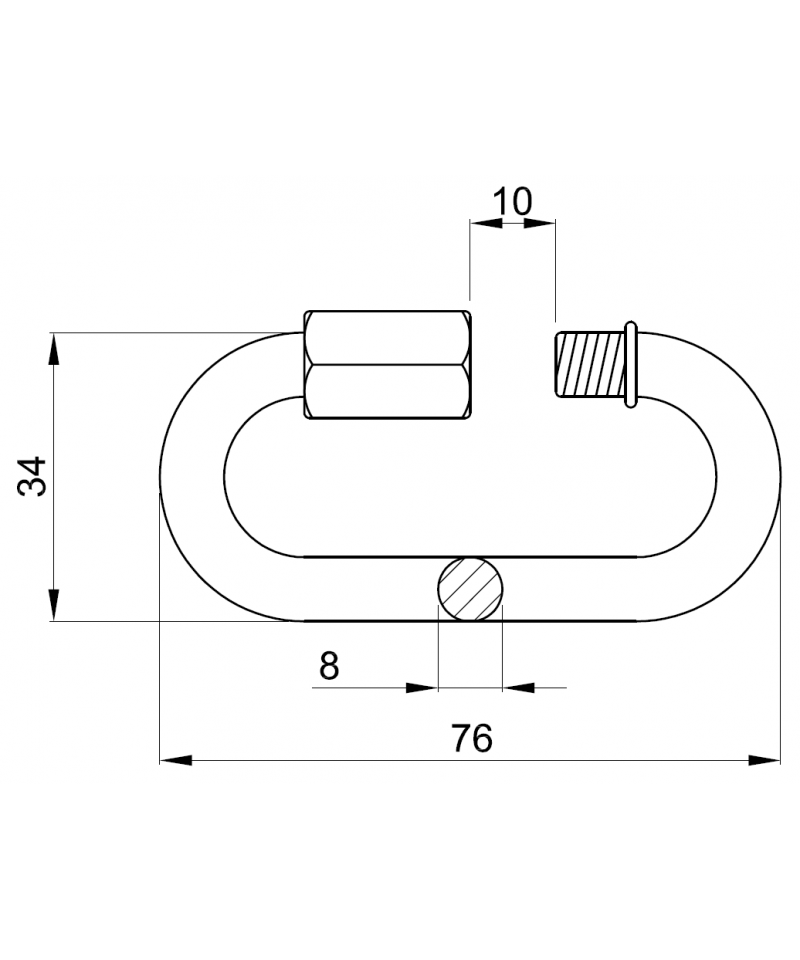 Šroubovací karabina k bezpečnostnímu lanku, nosnost 700 kg, ČSN024320, délka 76 mm. Barva stříbrná.