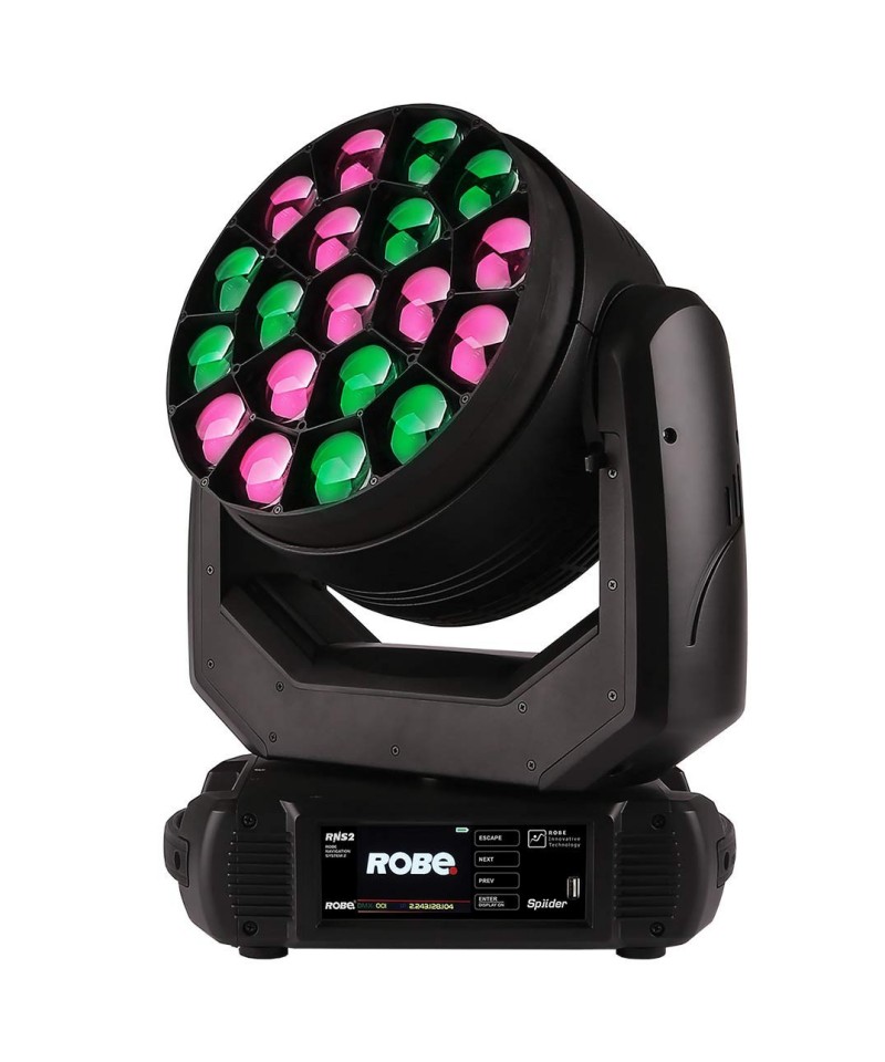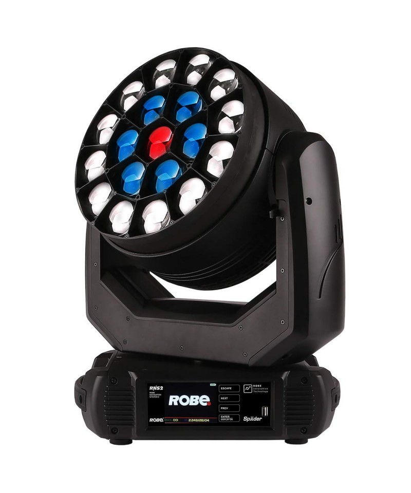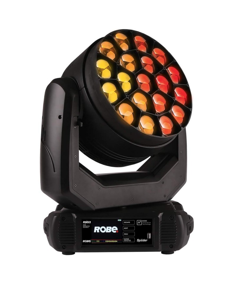 Nový, unikátní střední díl (Robe exkluzivní Flower efekt) je osazen 60W RGBW LED multičipem dokáže vytvářet inovativní ostré různobarevné paprsky světla, rotující v obou směrech s proměnlivou rychlostí, což nabízí nový neotřelý vizuální efekt pro show. Tomu pomáhají dynamické video efekty - ovládání jednotlivých pixelů po DMX z pultu či media serveru prostřednictvím sACN s vnitřním HTP mergerem, DMX nebo Kling-Net protokolu. Jak je u Robe zvykem, i Spiider nabízí bohaté barvy s jemnými, plynulými přechody díky vnitřnímu 18-bitovému systému LED stmívání.
